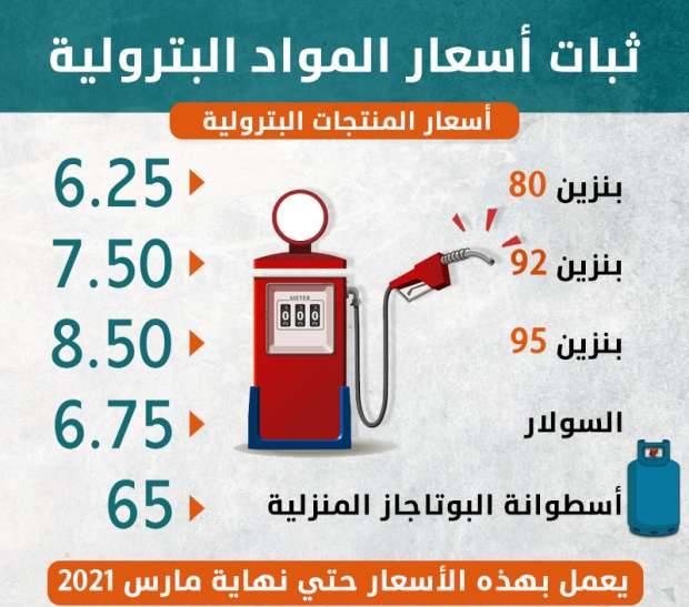 10 Jan, 2021👁 3899ثبات أسعار البنزين والسولار حتى نهاية شهر مارس عام 2021أوضحت مصادر مسئولة بقطاع البترول، في تصريحات خاصة أن لجنة التسعير التلقائي للمنتجات البترولية قررت تثبيت اسعار المنتجات البترولية (الب...